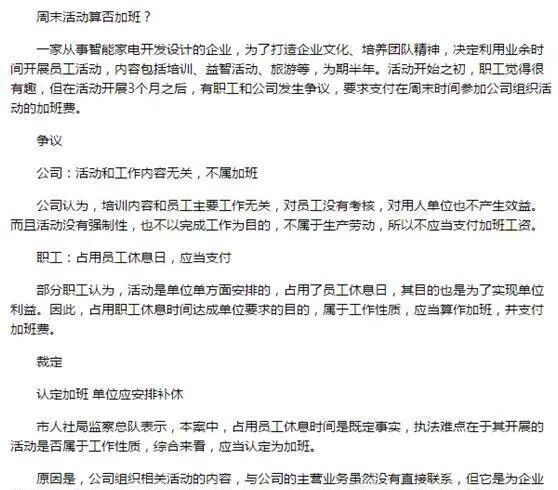 但已经有将周末参加培训、团建定义为加班的仲裁。